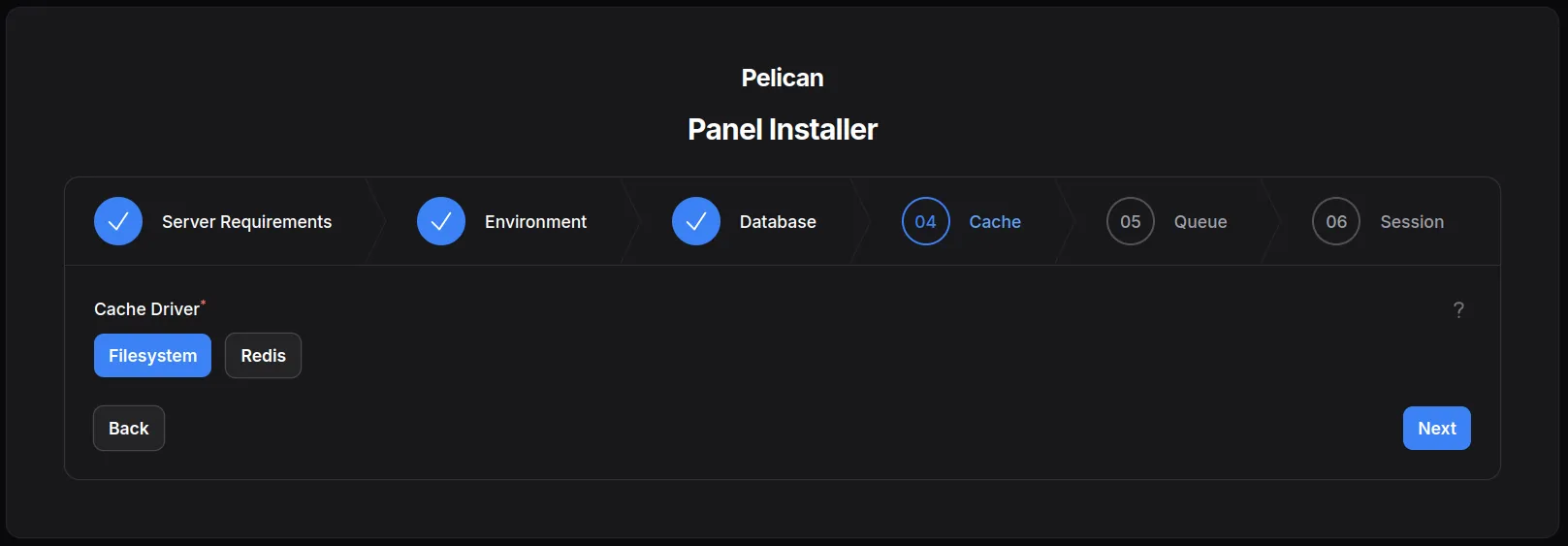 You should now be able to visit your Panel at https://<your-FQDN>/installer! Unlike Pterodactyl, Pelican has a short installation wizard to capture a few details about your installation upon the first visit. Note that you will be hit with a login screen instead of the installation wizard unless you append /installer to the end of your URL.